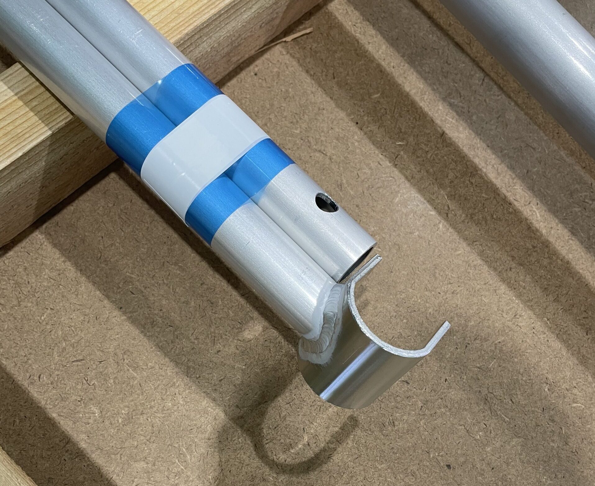 t5.0アルミ板をR曲した物にアルミパイプを溶接